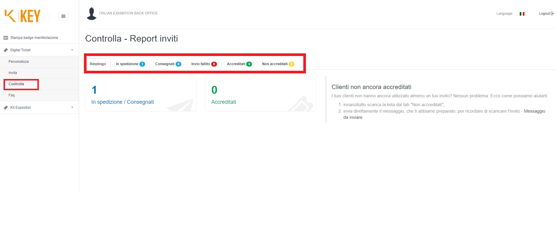 Dopodichè, potrai selezionare "controlla" dal menu di sinistra e monitorare l’andamento degli inviti. Le notifiche vengono spedite nell’arco di pochi minuti.